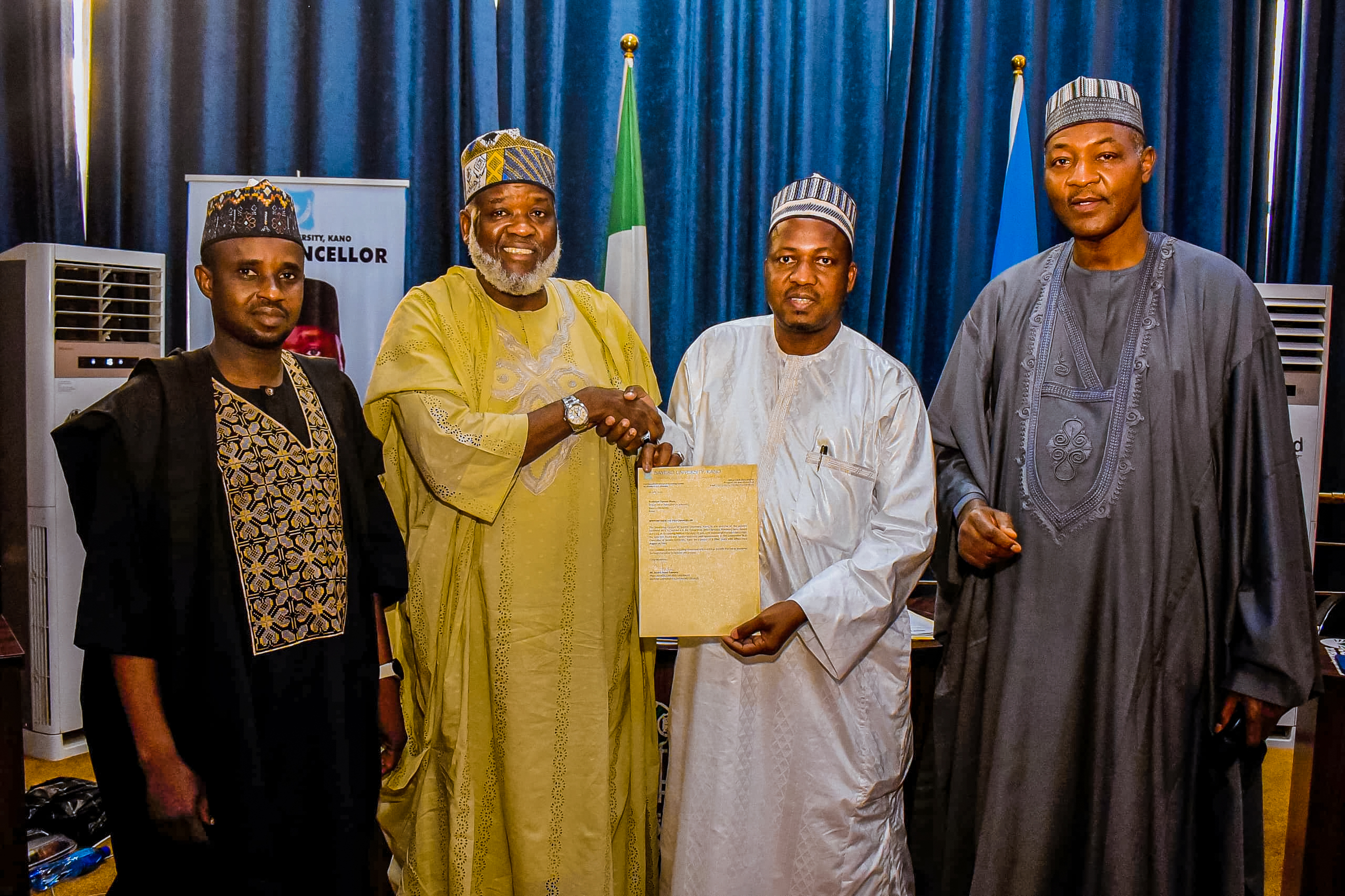 The letter of appointment was presented by the Chairman of the Governing Council, Dr. Nasiru Yusuf Gawuna, in the presence of Council members, the outgoing Vice-Chancellor, Prof. Abbas, and the University Registrar, Haruna Aliyu. Dr. Gawuna congratulated Prof. Musa on his well-deserved appointment and extended his best wishes for a successful tenure.